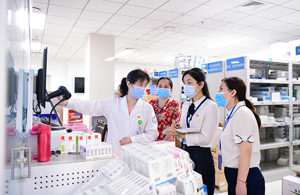 重庆市璧山区纪委监委将整治医药购销领域腐败作为“我为群众办实事”实践活动的一项重要内容。图为7月5日,驻区卫生健康委纪检监察组在区人民医院药房抽查药品采购、管理等情况。 胡悦建 摄